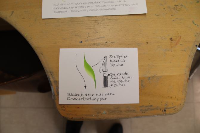 | Bitte mitbringen: | weißes und kariertes Skizzenpapier, Zeichenpapier oder Karton, Bleistifte B oder B2, Radiergummi, Lineal, Schere, Kleber, wasserfeste Fineliner (S und M), Brushpen-Set, Buntstifte, farbige Filzer, Tuschkasten, Aquarelle- oder Gouachefarben und 2 kleine Spitzpinsel (0 bis 4), 5,00 EUR für ein Skript und eine Materialbox |
